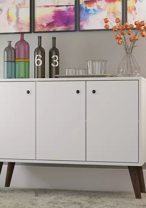 The Bromma Buffet Stand redefines the average buffet and completes a dining space with its smart design and generous cabinet space to stylishly tuck away dishes and save that special bottle of wine. A pair of double doors reveal two shelves for dinnerware, while a door on the left exposes a cabinet perfect for storing pitchers, wine, or candlesticks. With its classic mid-century modern design, the piece will instantly transform a room with its understated sophisticated vibe. It’s available in white or oak and aqua.