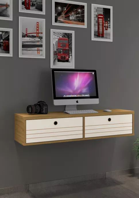 Take care of work and business in style with the Liberty Floating Office Desk, a seamless and easy solution for the home office you’ve always wanted but never had space for. With two dropdown shelves perfect for laptops, electronic gadgets, and all your important files, this desk is both functional and designed to perfection with its clean lines and go-anywhere aesthetic. In the kitchen, living space, or bedroom, this piece moves from space to space without difficulty.