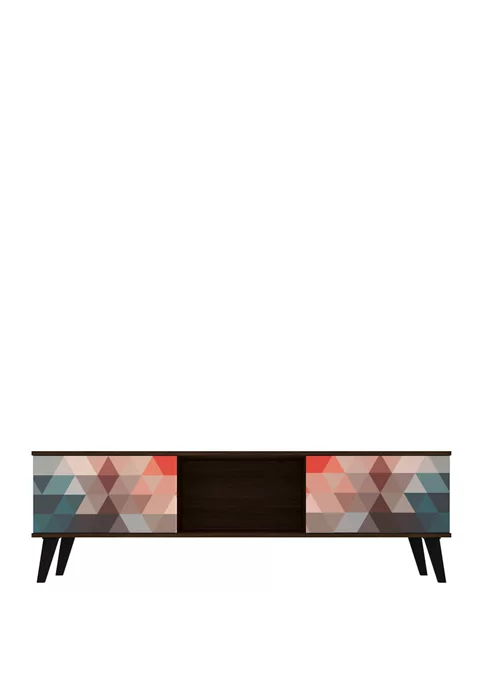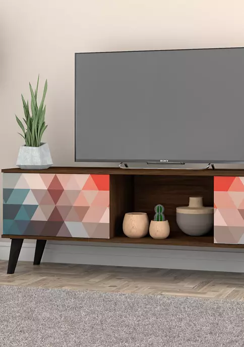 Entertaining has never been easier or looked this good with the Doyers TV Stand, an edgy and modern piece thatβs simple in design, yet completely functional and seamless in any space. With four concealed shelves perfect for tucking away all media accessories, electronics, books, and beyond, and center open space can showcase a DVD player, coffee table books, and any favorite items to keep on display. Set decorative accents, framed family photos, or planters on its base to tie the space together, and invite friends and family over for a great movie night in.