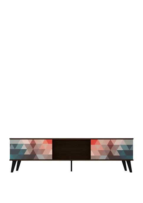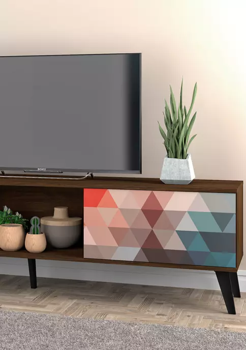 Entertaining has never been easier or looked this good with the Doyers TV Stand, an edgy and modern piece thatβs simple in design, yet completely functional and seamless in any space. With four concealed shelves perfect for tucking away all media accessories, electronics, books, and beyond, and center open space can showcase a DVD player, coffee table books, and any favorite items to keep on display. Set decorative accents, framed family photos, or planters on its base to tie the space together, and invite friends and family over for a great movie night in.