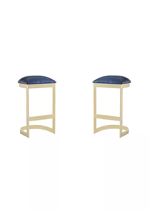 A study in balance. This bar stool is all understated luxury. Featuring a floating frame design with a curved base, its unique modern style creates an undeniable sense of lightness. Smooth Faux Leather upholstery is tailored into a sleek cushioned seat that rests easily on a polished metal base, enhancing its effortless feel. Its chic polished brass finish lends a subtly sumptuous touch that will elevate the atmosphere in any dining space. To complete the look, coordinate with the Aura Dining Chair.