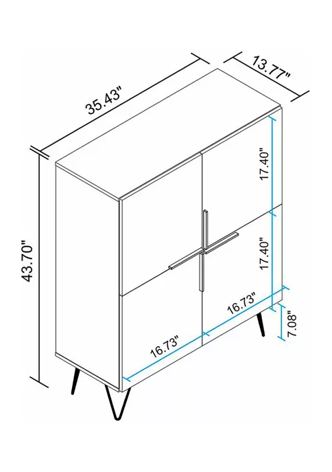 - 35.43 in. Length, 43.7 in. Height, 13.77 in. Depth.
