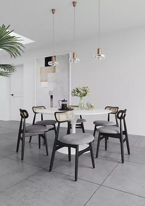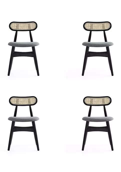 Modern – Industry Chic Cane Dining Chair Perfect for Dining Room Use. Set of 4 * Measures: 17.52 in. Length, 29.92 in. Height, 19.09 in. Depth. * Fine Natural Cane Made from Authentic Wooden Rattan. * Frame Made of American Solid Ash Wood Featuring Natural Grain Textures. * Seat Upholstered in Woven Polycotton Filled with High Density Foam. * Seat Height Measures: 18.11 in. With Weight Capacity of 275 Lbs. * Unique Rectangular Oval Backrest Made of Cane. * Delivered to you Fully Assembled! No Assembly Required!