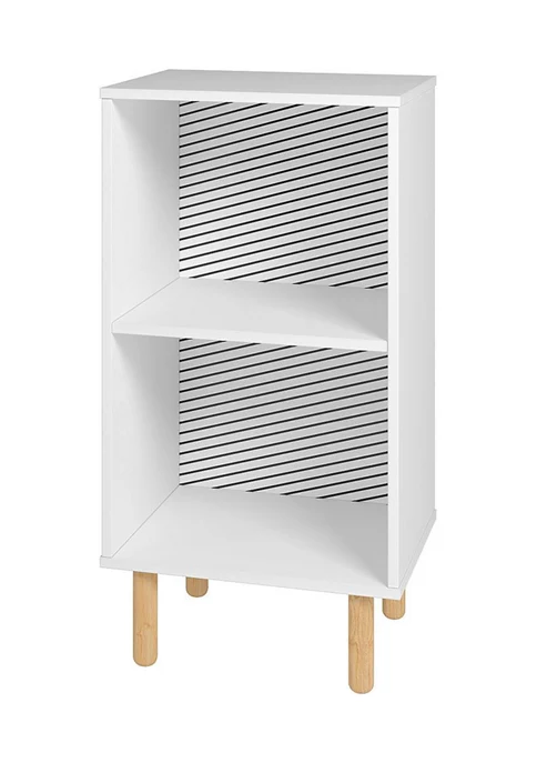 Mid-Century Modern Nightstand for Bedroom Use. * Upon Assembly, Measures: 17.51 in. Length, 33.66 in. Height, 13.77 in. Depth. * Includes 2 Open Shelves. * Interior Shelf Dimensions: 12.99″ Height, 16.14″ Length. * Unique Diagonal Zebra Back Print. * Features Solid Wood Natural Color Stump Legs for Fashion and Durability. * Perfect to Display Home Dรฉcor Items, Frames, Tchotchkes, Books, Trophies and More! * Home Assembly Required. All Hardware Included