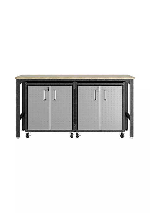 β’ Includes 2 Mobile Garage Cabinets and 1 Worktable with Tuck In Features.
