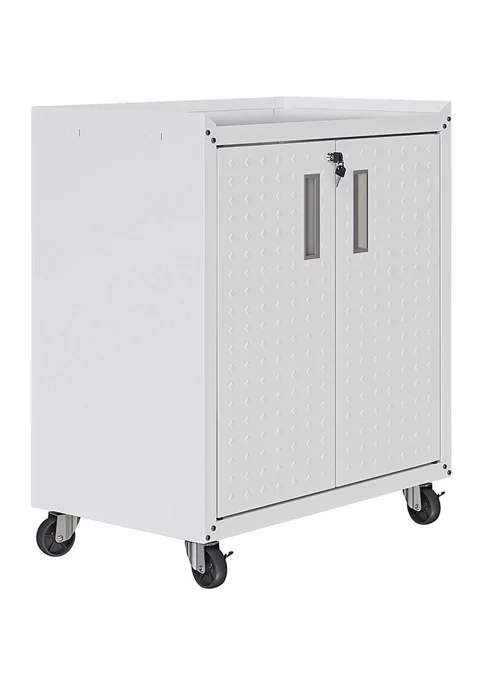 The Fortress 31.5 Mobile Garage Cabinet with Shelves, features an adjustable shelf and two doors to help keep items safe and organized. Perfect for storing garage tools and accessories, stainless swivel casters allow for easy mobility and a door lock and key protect tools from tarnishing. Durable and built to last, this piece is a highly functional unit that belongs in any garage. Fortress Textured Metal 31.5″ Garage Mobile Cabinet with 2 Adjustable Shelves in White. Mobile Diamond Shape Texture Steel 31.5″ Storage Cabinet for Garage Use. * Upon Assembly, Measures:30.3 in. Length, 31.5 in. Height, 18.2 in. Depth. * Includes 2 Doors and 1 Adjustable Shelf. * Features Unique Door Lock and Key. * Recessed Steel Handle * Space Saving Design – Fits Under the Manhattan Comfort Fortress Garage Work Table. * Stainless Steel Swivel Casters for Easy Mobility. Includes a Metal Latch to Lock Wheels. * Home Assembly Required. All Hardware Included.