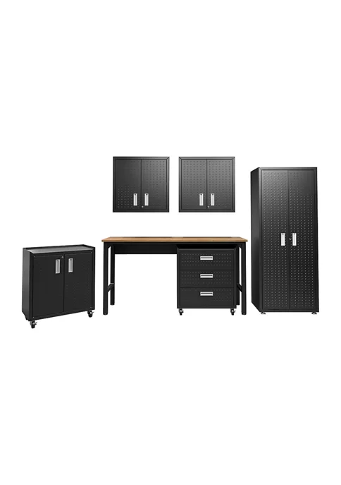 The Fortress Garage Collection gets its name for its durability, design, and craftsmanship. Included in the set is 6 highly functional units. The Fortress 71.8” Tall Garage Cabinet includes adjustable shelves with ample storage space for all your tools and garage accessories. The 2 Fortress Mobile Cabinets feature stainless steel swivel casters for easy mobility and a metal latch to lock wheels. Mobile cabinets also feature a space saving design as they fit perfectly under the Fortress Garage Table included in this set. Still need more storage space?! The 2 Floating Garage Cabinets include adjustable shelves and includes wall brackets to mount on your wall. Maximize your storage space with the Manhattan Comfort functional 6-Piece Fortress Garage Collection. Made with steel frames and textured doors. 6-Piece Fortress Textured Garage Set with Cabinets, Wall Units and Table in Charcoal Grey. 6-Piece Garage Set to complete all your Storage Needs. * Free Standing Cabinet: 30.3 in. Length, 74.8 in. Height, 18.2 in. Depth. Mobile Cabinet with Drawer and Shelves: 30.3 in. Length, 31.5 in. Height, 18.2 in. Depth. Mobile Cabinet with Shelves: 30.3 in. Length, 31.5 in. Height, 18.2 in. Depth .Floating Cabinet: 30 in. Length, 30.3 in. Height, 12.5 in. Depth .Work Table: 72.4 in. Length, 37.6 in. Height, 20.5 in. Depth . * Set Includes 1 -74.8″ Freestanding Cabinet, 2 -Mobile Chests, 2 -Floating Wall Cabinets and 1 -Work Table. * Features Unique Door Lock and Key, Full Extension Drawers and Adjustable Shelves. * Stainless Steel Swivel Casters for Easy Mobility. Includes a Metal Latch to Lock Wheels. * Recessed Steel Doors Handle. * Space Saving Design – 2 Chests will Fit Under the Manhattan Comfort Fortress Garage Work Table. * Home Assembly Required. All Hardware Included.