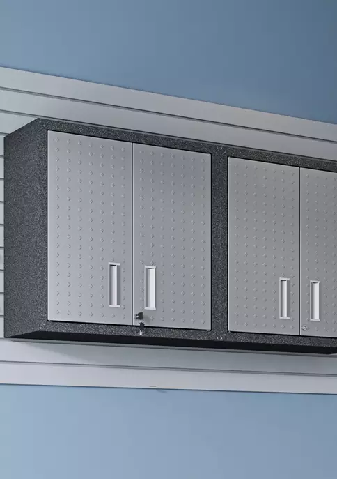 Floating Diamond Shape Textured Wall Garage Cabinet. * Upon Assembly, Measures:30 in. Length, 30.3 in. Height, 12.5 in. Depth. * Includes 2 Doors and 1 Adjustable Shelf. * Features Unique Door Lock and Key. * Recessed Steel Handle * Wall Brackets Included for Product Durability. * Set of 2 Floating Garage Storage Compartments. * Home Assembly Required. All Hardware Included.