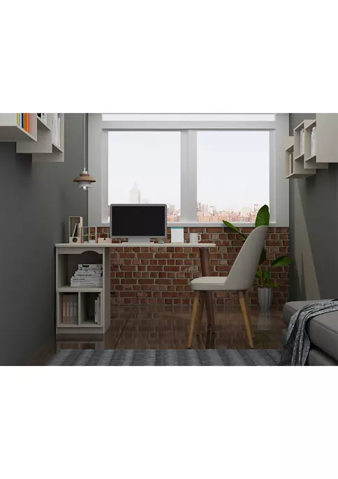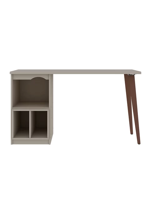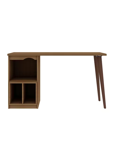 Work on those goals and check off your tasks in your new workspace, beautifully designed with mid-century modern artful detailing and practical functionality in mind. The Hampton Desk features durable splayed legs on one side, while open shelving provides ample storage space on the other for all your work items. Ensure your files, tablets, and books stay organized with plenty of space to tuck the work away to work to enjoy the time off.