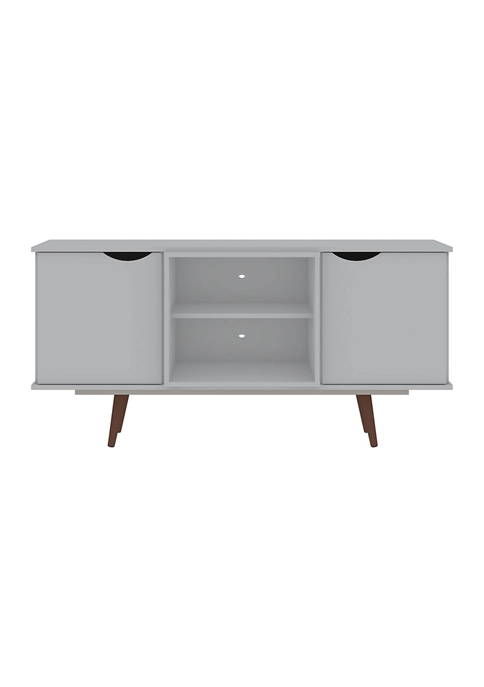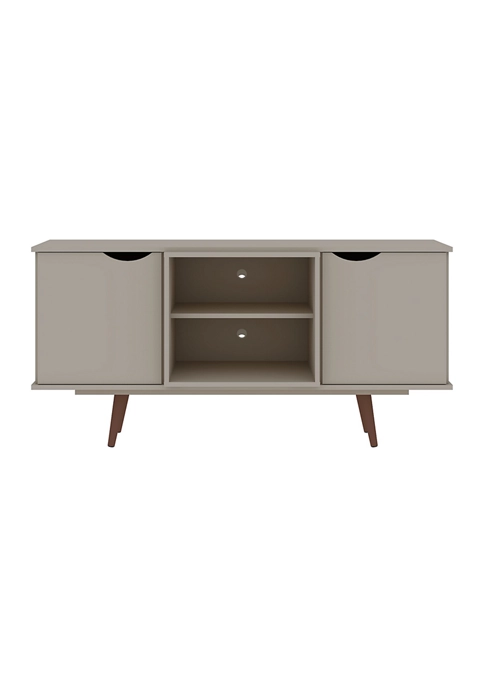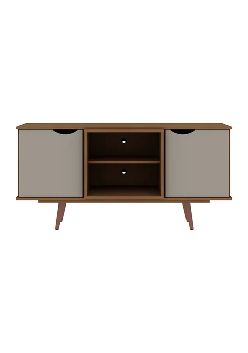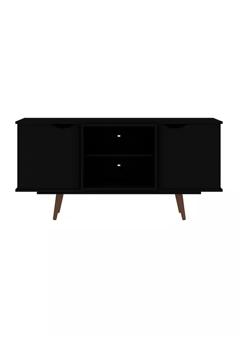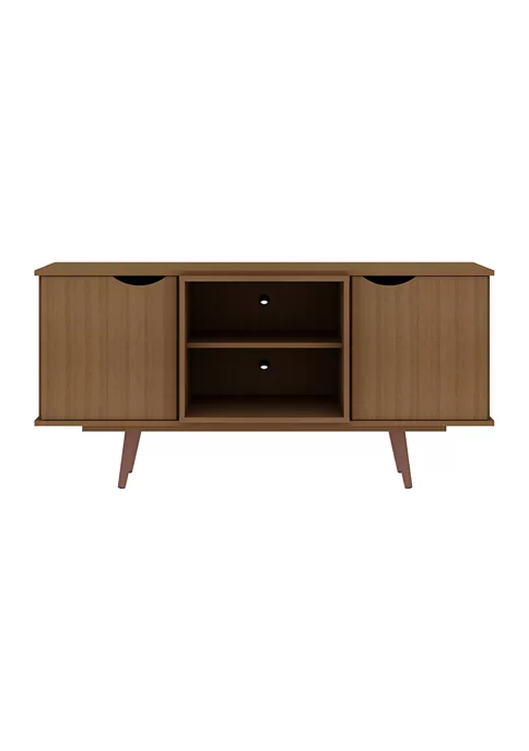 Gather the family together for the ultimate Netflix night in with the Hampton TV stand that makes movie night comfortable and convenient, featuring plenty of open and concealed storage to tuck away media accessories, favorite DVDs, books, extra throw blankets, and more. Functional and crafted with a mid-century modern flair, this piece blends beautifully with any existing décor, while splayed legs and artful detail keep it classic and fresh.
