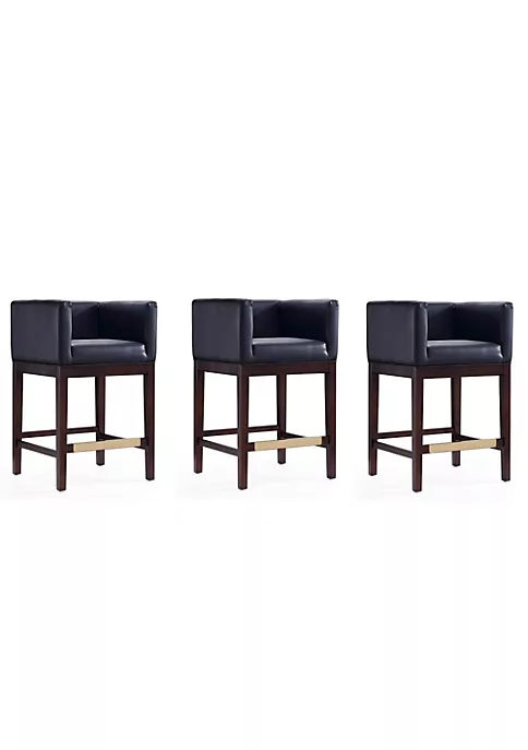 Tight back squared frame upholstery in leather with high density foam, this counter stool brings you comfort and class with it sleek design and gold metal footrest.