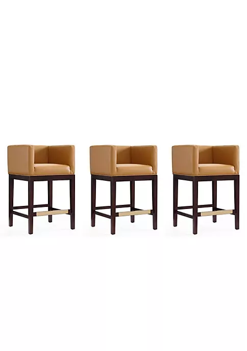 Tight back squared frame upholstery in leather with high density foam, this counter stool brings you comfort and class with it sleek design and gold metal footrest.