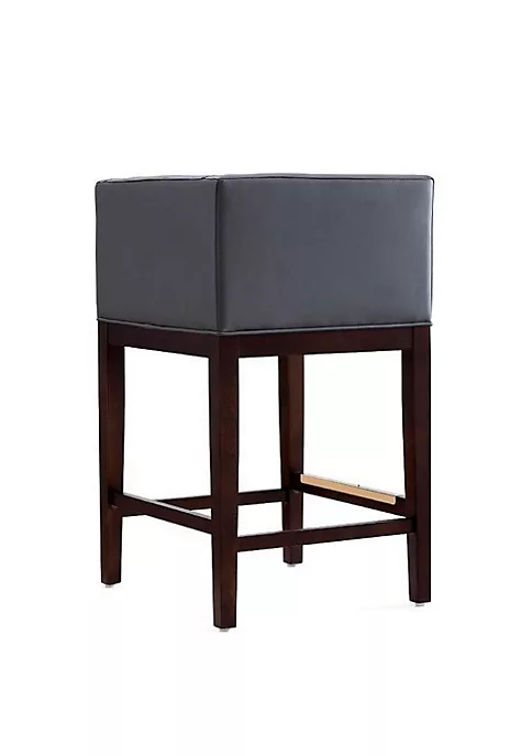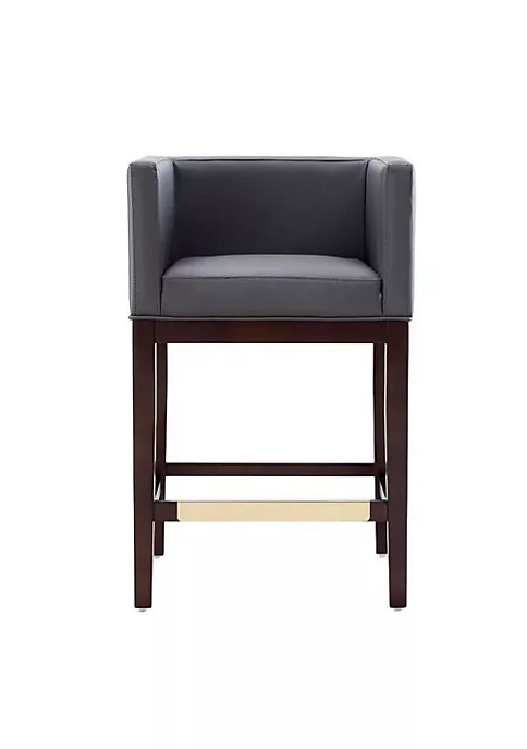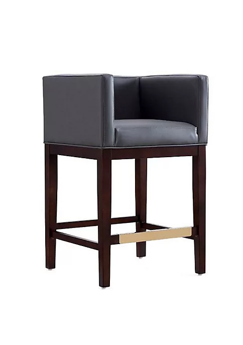 Tight back squared frame upholstery in leather with high density foam, this counter stool brings you comfort and class with it sleek design and gold metal footrest.