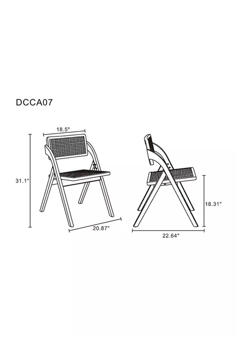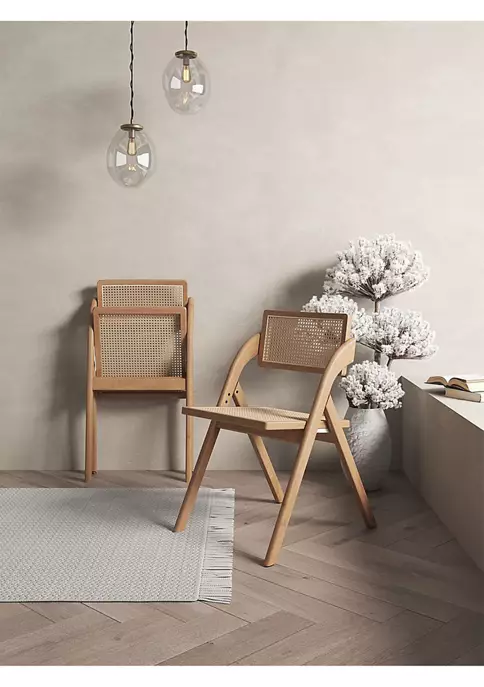 Modern – Industry Chic Cane Folding Dining Chair Perfect for Dining Room Use. Set of 2 * Measures: 20.87 in. Length, 31.1 in. Height, 22.64 in. Depth. * Fine Natural Cane Made from Authentic Wooden Rattan. * Frame Made of American Solid Ash Wood Featuring Natural Grain Textures. * Seat Made from Natural Cane. * Seat Height Measures: 18.31 in. With Weight Capacity of 275 Lbs. * Featuring Folding Capabilities. Perfect to Store Away When Not in Use. * Delivered to you Fully Assembled! No Assembly Required!