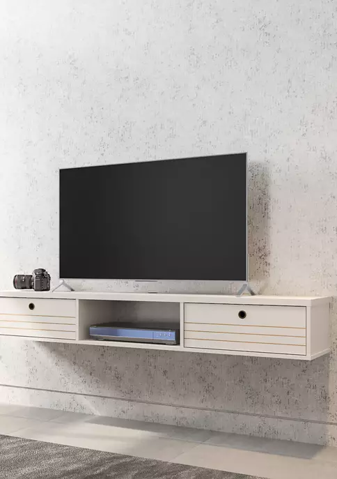 - 2 concealed drop-down shelves, 1 center open shelving