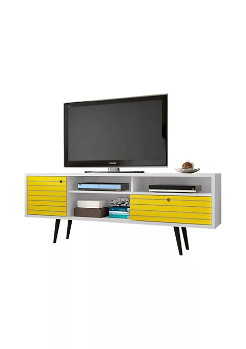 The Liberty 70.86 Mid Century Modern TV Stand is mid century modern at its best. Quality craftsmanship and careful detailing create the ultimate blend of style, functionality, and brilliant design. A sophisticated entertainment center, the piece features open shelving, as well as two hidden compartments perfect for stashing DVDs, board games, electronics, and media accessories.