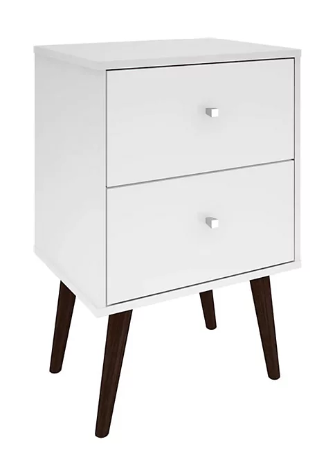 The Liberty Mid Century Modern Nightstand 2.0 is where modern functionality meets quality craftsmanship and smart design. Cool metal handles protect a pair of drawers durable enough to carry 22 lbs. and a base top perfect for showcasing books, magazines, or candles. As an end table or as a nightstand, the piece serves dual purposes and blends well in any space. Available in white, white and rustic brown, white and aqua blue, and white and yellow.