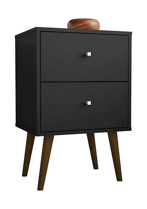 The Liberty Mid Century Modern Nightstand 2.0 is where modern functionality meets quality craftsmanship and smart design. Cool metal handles protect a pair of drawers durable enough to carry 22 lbs. and a base top perfect for showcasing books, magazines, or candles. As an end table or as a nightstand, the piece serves dual purposes and blends well in any space.