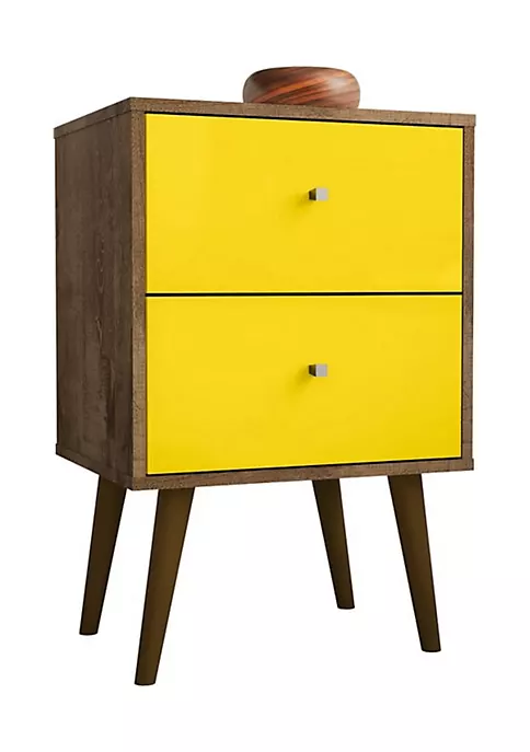 - Modern Nightstand for Bedroom or Living Room use. | Upon Assembly | Perfect for Storage or Display items. | Each Drawer can hold 22 Lbs. | Fashionable Splayed Legs made from Solid Wood for Extra Durability. | Includes 2 Drawers.