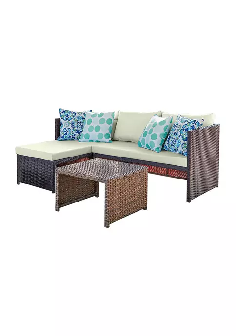 Modern 2-Piece Outdoor Chaise, 2-Seater, and Coffee Table Set. * Chaise Lounge Chair Measures: 25.20″ Length, 48.43″ Depth, 26.38″ Height. * 2-Seater Measures: 48.43″ Length, 25.20″ Depth, 26.38″ Height * Coffee Table Measures: 17.72″ Length, 17.72″ Depth, 26.38″ Height. * Removeable Cushions with Zipper. Made of High Quality Water Proof Fabric. Washable Fabric. * The 3 Seater Sofa with Chaise Includes 3 Back Pillows for Extra Comfort. * Frame Made of Steel Wrapped in PVC Rattan Perfect for Outdoor Weather. * Home Assembly Required. All Hardware Included