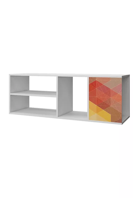 Mid-Century Modern Floating TV Panel for Bedroom or Living Room use. * Upon Assembly, Measures: 46.06 in. Length, 16.14 in. Height, 13.77 in Depth. * Recommended for a 48″ TV. * Includes 4 Open Shelves for Media and Storage Use. * Feature 1 Side Cubby Shelf with Measurements of: 14.96″ Height, 11.57″ Depth, and 13.77″ Wide * Weight Capacity: 70 Lbs. * Wall Mounting Brackets Included. * Home Assembly Required. All Hardware Included.