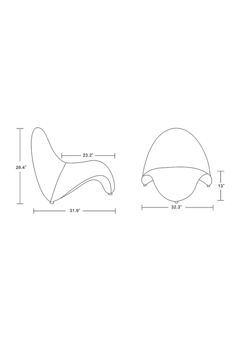 Modern Abstract Lounge Accent Chair Perfect for Pop Living Room Usage. Set of 2 * Measures: 32.3 in. Length, 26.4 in. Height, 31.9 in. Depth. * Distinctive Abstract Modern Tongue Designed Accent Lounge Chair. * Upholstered in Wool Blend Fabric for Ideal Durability and Softness * Framed Made of Metal with 3 Geometric Legs. * Fully Padded High Density Foam Filled Surface for Complete Comfort. * Weight Capacity: 300 Lbs. Seat Height: 13 inches. Lounge Leg Length: 23.2 inches. * Delivered to you Fully Assembled! No Assembly Required!