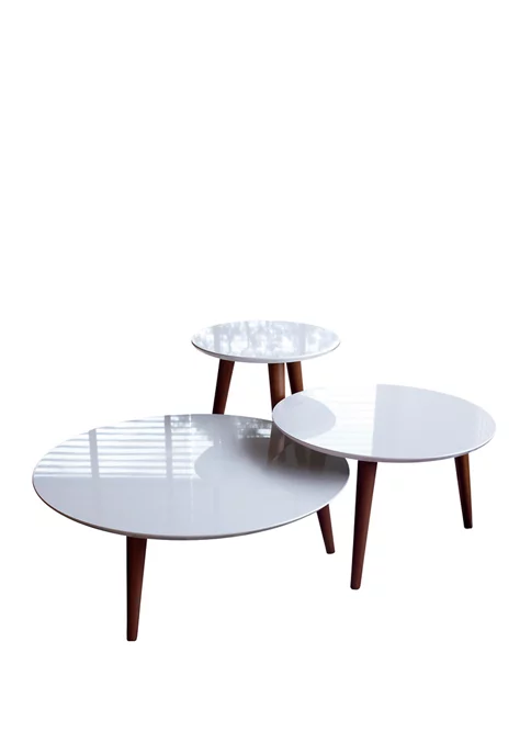 Featuring a modern round top, these tables by Manhattan Comfort make the perfect set, with trendy wooden legs and a simple design.