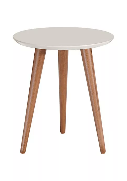 - Round End and Accent Table for Living Room | Upon Assembly | Geometric 3 – Leg Base Design. | Solid Wood Splayed Legs for Fashion Statement Design and Product Durability. | Mix and Match: Get the Collection! Give your End Tables a Stacked Look with Manhattan Comfort Moore End Tables. | Made of High Quality MDF with Painted Smooth Gloss Finish.