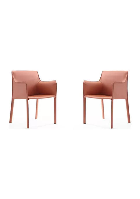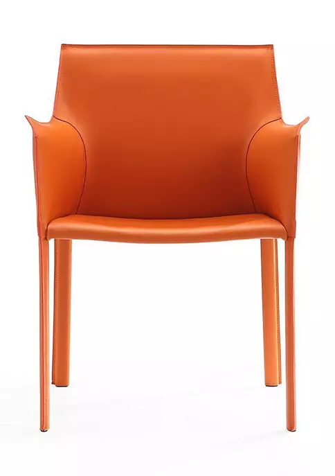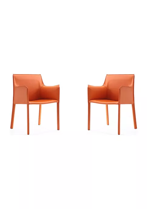 Modern Dining Chair Perfect for Dining and Home Office Use. Set of 2 * Measures: 21.65 in. Length, 32.68 in. Height, 25.2 in. Depth. * Frame Made of Durable Metal * Upholstered In Saddle Leather. * 100% Tailored Upholstery from Top to Bottom. Legs Included. * Standard 4-Leg Base. * Seat Height: 17.32″ * Delivered to you Fully Assembled! No Assembly Required!