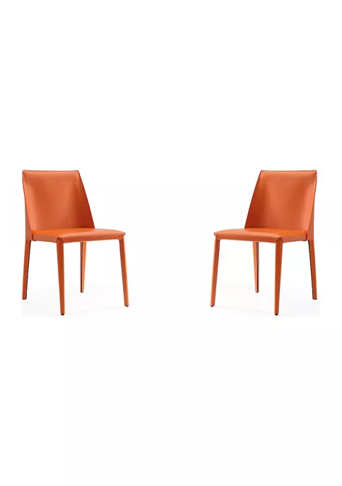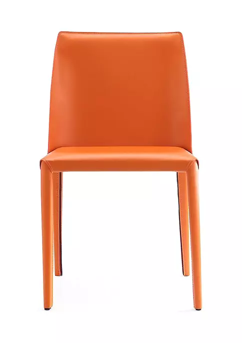 Modern Dining Chair Perfect for Dining and Home Office Use. Set of 4 * Measures: 18 in. Length, 31.5 in. Height, 20.87 in. Depth. * Frame Made of Durable Metal * Upholstered In Saddle Leather. * 100% Tailored Upholstery from Top to Bottom. Legs Included. * Standard 4-Leg Base. * Seat Height: 17.32″ * Delivered to you Fully Assembled! No Assembly Required!