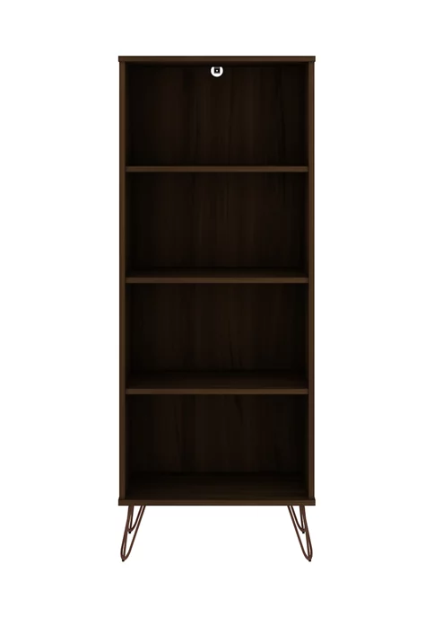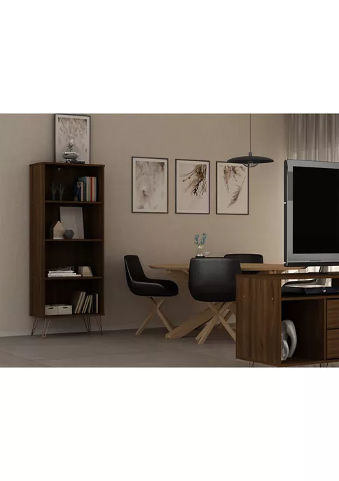 Showcase your books and decorative accents the right way with this bookshelf that plays up functionality and convenience in a modern and artful way. Mid-century modern touches like splayed metal legs and a streamlined silhouette easily work in any space. Ample shelving space is perfect for displaying all your favorite things, personal items, and plenty of great reads.