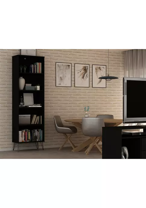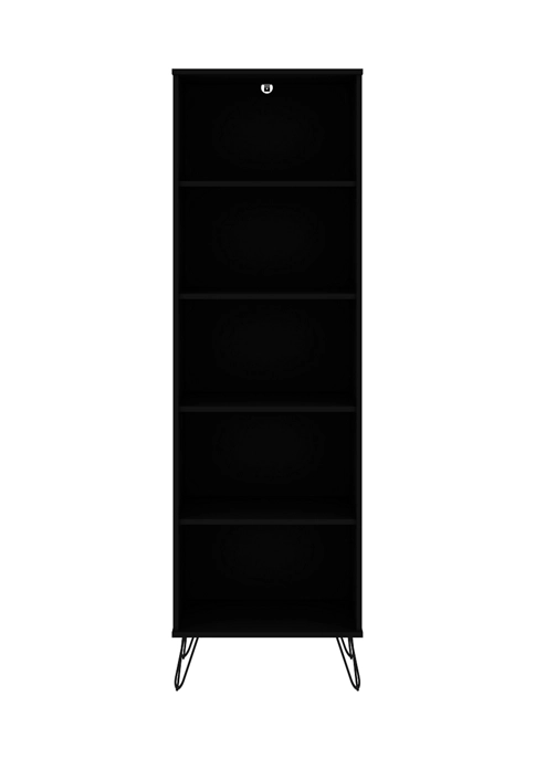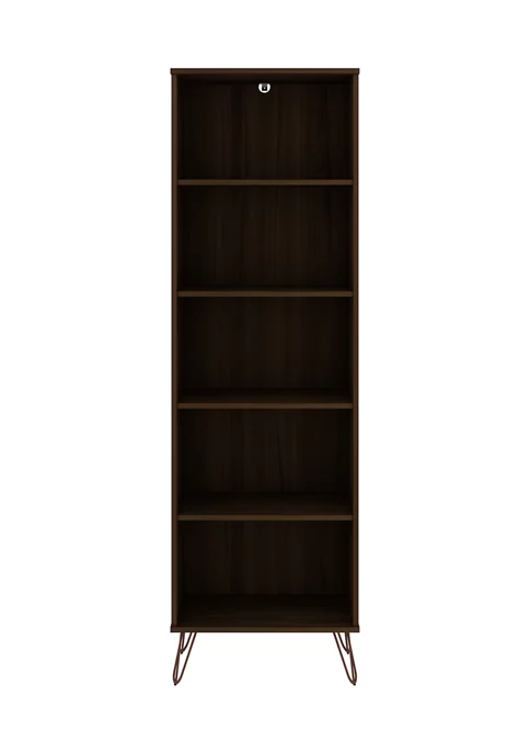 Modern, functional, and mid-century modern at its best, the Rockefeller bookcase features plenty of shelving space perfect for displaying your impressive book collection, decorative accents, and favorite framed photos. A seamless design and artful metal played legs keep this piece fresh as it moves easily from space to space and works well with any existing décor. Line up books by color in stacks, dress up the shelves with fresh florals and use it over and over again.