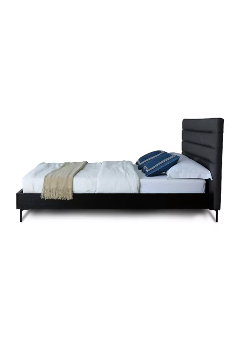 Mid-Century Modern Bedframe with Headboard for Bedroom Use. * Upon Assembly, Measures: 65.7 in. Length, 43.9 in. Height, 85.2 in. Depth. * Upholstered In Luxurious Woven Blend with High Density Foam Filled Padded. * Features Beautifully Horizontal Line Stitched Headboard. * Recommended Mattress Size: 60″ x 80″ * Metal Leg Height: 5.9″ * No Box Spring Needed, Slats Included. * Home Assembly Required. All Hardware Included