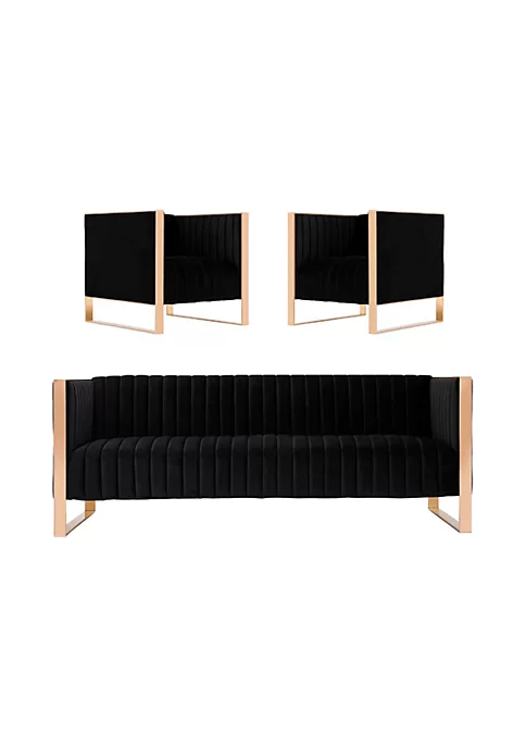 Trillium Sofa and 2 Armchairs (Set of 3) in Black and Rose Gold