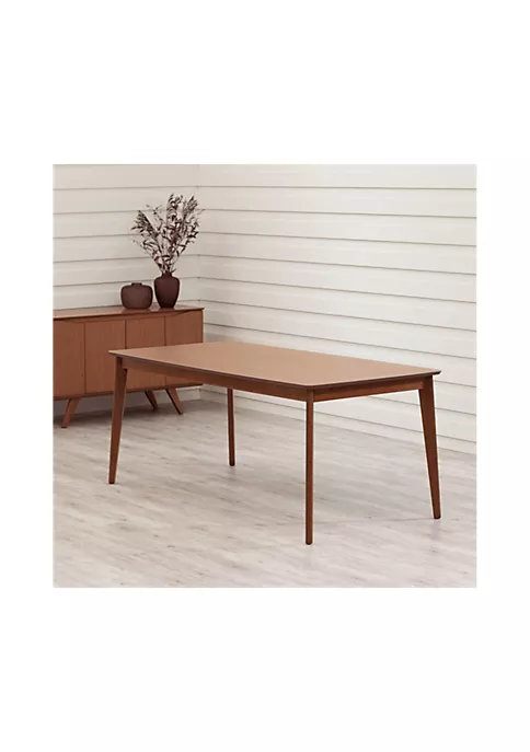 Beautifully crafted from solid wood, the Tudor table is a classic Mid Century mainstay that never goes out of style. Gather your loved ones around the table for a dinner party with seating for six and plenty of space for serving. Rounded edges and splayed legs are a nod to Mid Century Modern craftsmanship and add a timelessness and warm vibe to your space. Style it with florals in arranged in a decorative vase and favorite linens to make it feel like your own. Add a rug to help ground the space and create an intimate setting for your next classy dinner.