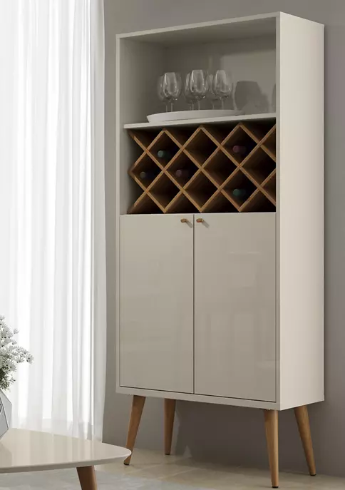 The Utopia China Storage Closet is for the wine lover, entertainer, and the tastemaker, who can appreciate a fine bottle of wine and a high quality, functional unit. Featuring ample storage space, with three concealed shelves and one open upper shelf, the sideboard also includes ten slots to hold your favorite bottles of wine in between celebrations. Copper metal round door handles add a touch of sophistication to this bold piece, bound to create a statement in any space. Available in off-white and maple cream and white gloss and maple cream.