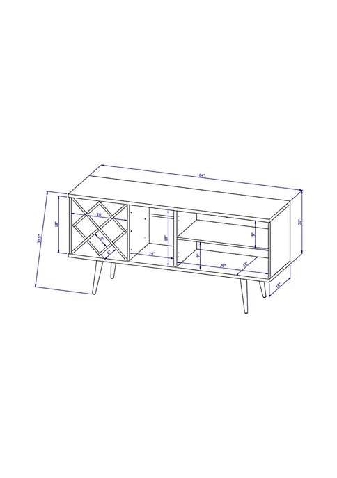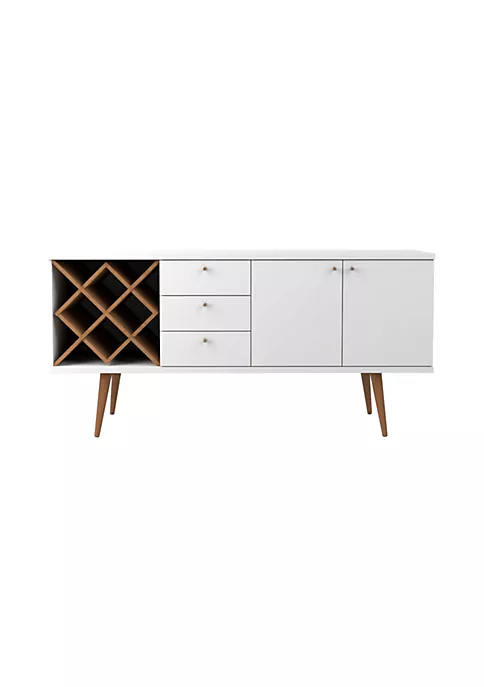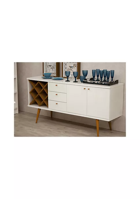 - Modern Sideboard and Buffet Stand for Living and Dining Room Use. | Upon Assembly | Features a Side Wine Rack with Space for 4 Standard Bottles | Includes 3 Full Extension Drawers | Copper Metal Round Door Handles | Fashionable Splayed Legs made from Solid Wood for Extra Durability.