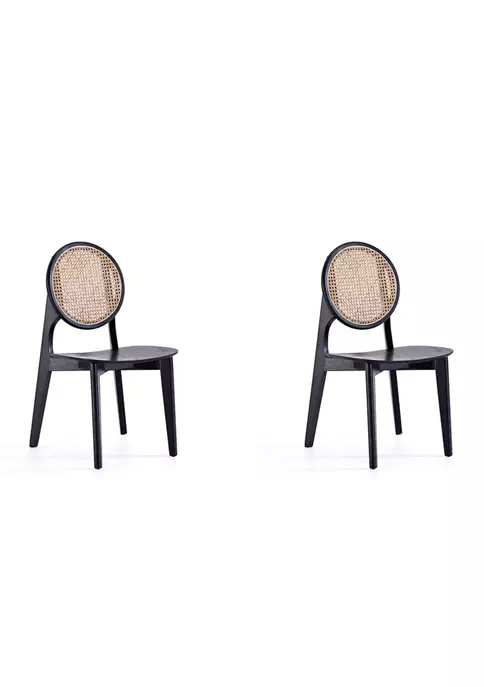 Modern – Industry Chic Cane Dining Chair Perfect for Dining Room Use. Set of 2 * Measures: 18.5 in. Length, 34.65 in. Height, 20.28 in. Depth. * Fine Natural Cane Made from Authentic Wooden Rattan. * Frame Made of American Solid Ash Wood Featuring Natural Grain Textures. * Seat Made from Plywood. * Seat Height Measures: 16.54 in. With Weight Capacity of 275 Lbs. * Unique Round Backrest Made of Cane. * Delivered to you Fully Assembled! No Assembly Required!