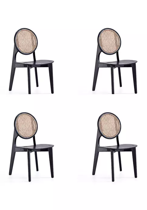 Modern – Industry Chic Cane Dining Chair Perfect for Dining Room Use. Set of 4 * Measures: 18.5 in. Length, 34.65 in. Height, 20.28 in. Depth. * Fine Natural Cane Made from Authentic Wooden Rattan. * Frame Made of American Solid Ash Wood Featuring Natural Grain Textures. * Seat Made from Plywood. * Seat Height Measures: 16.54 in. With Weight Capacity of 275 Lbs. * Unique Round Backrest Made of Cane. * Delivered to you Fully Assembled! No Assembly Required!